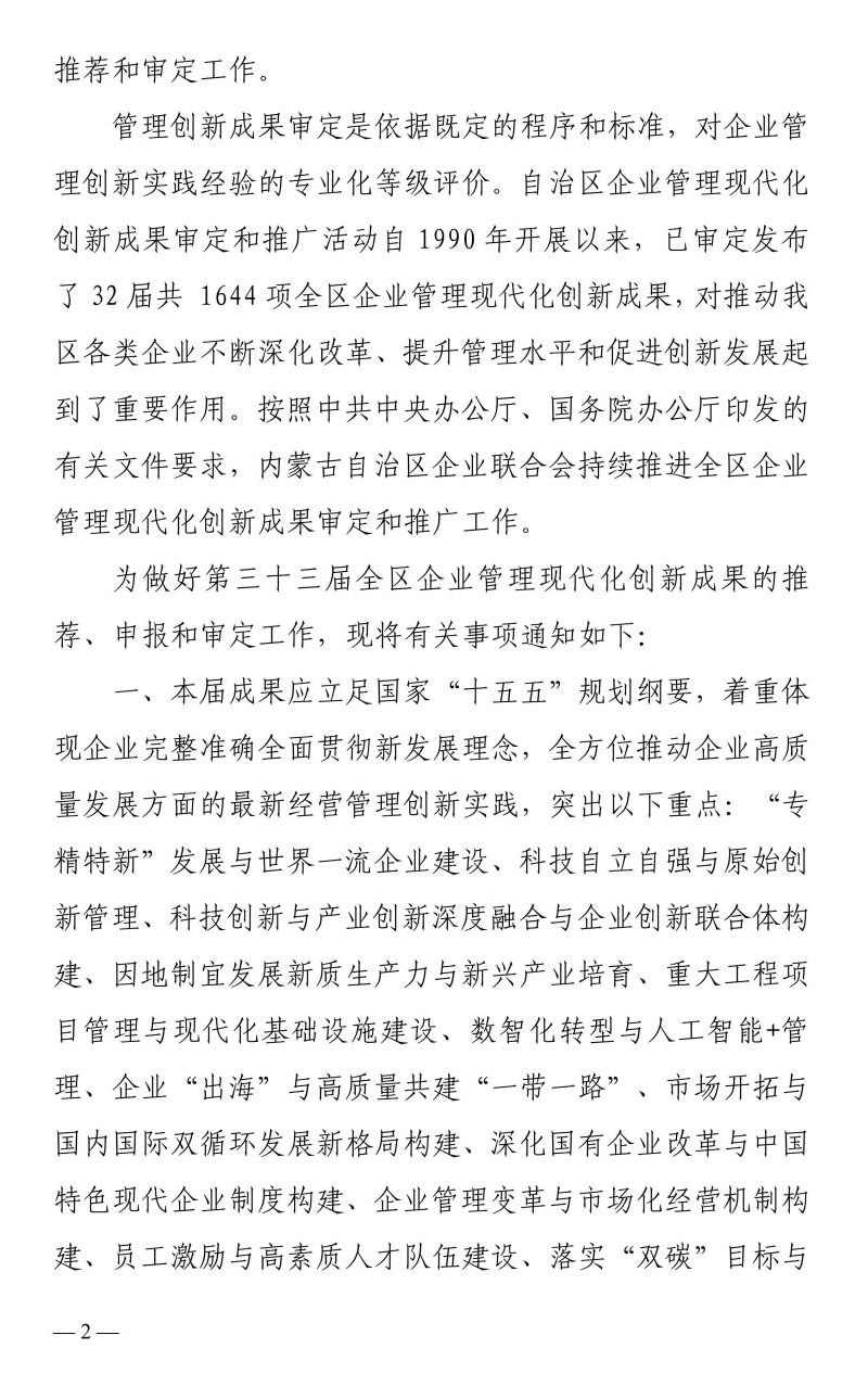 关于开展自治区第三十三届 企业管理现代化创新成果申报工作的通知